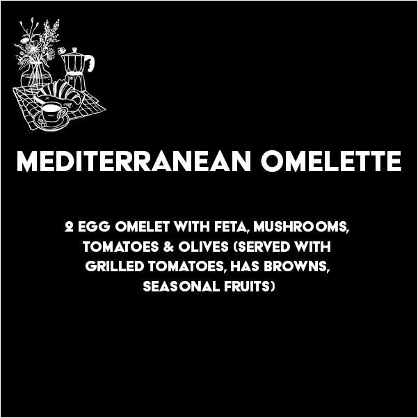 2 egg omelette with feta, mushrooms, tomato and olives.